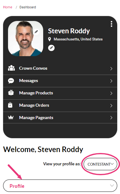 Note: You will see the pageants you already competed in under the tab "Pageants Competed In" and the current/upcoming pageants will come under "Current pageant" tab.